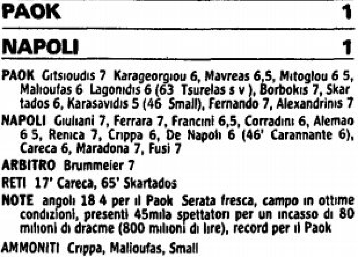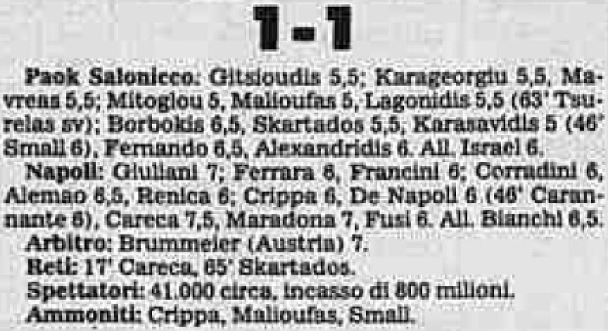 ПАОК Салоники - «Наполи» Неаполь - 1:1