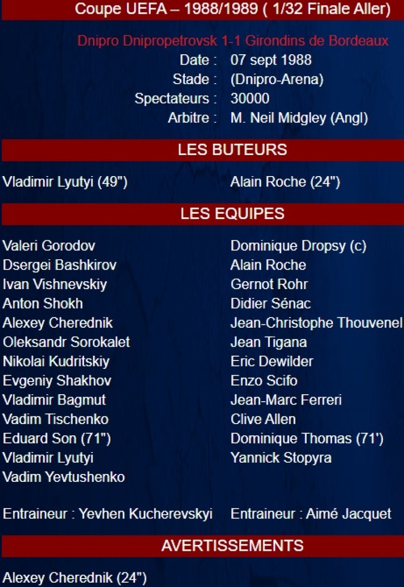 «Днепр» Днепропетровск - «Жиронден де Бордо» Бордо - 1:1