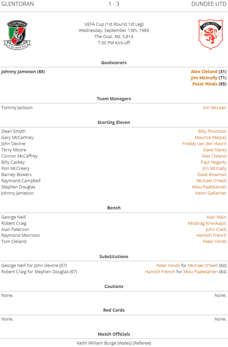 «Гленторан» Белфаст - «Данди Юнайтед» Данди - 1:3