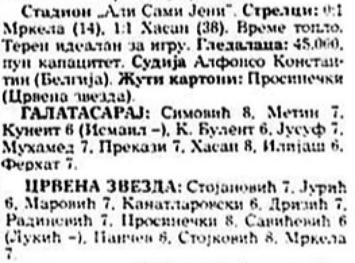 «Галатасарай» Стамбул - «Црвена Звезда» Белград - 1:1