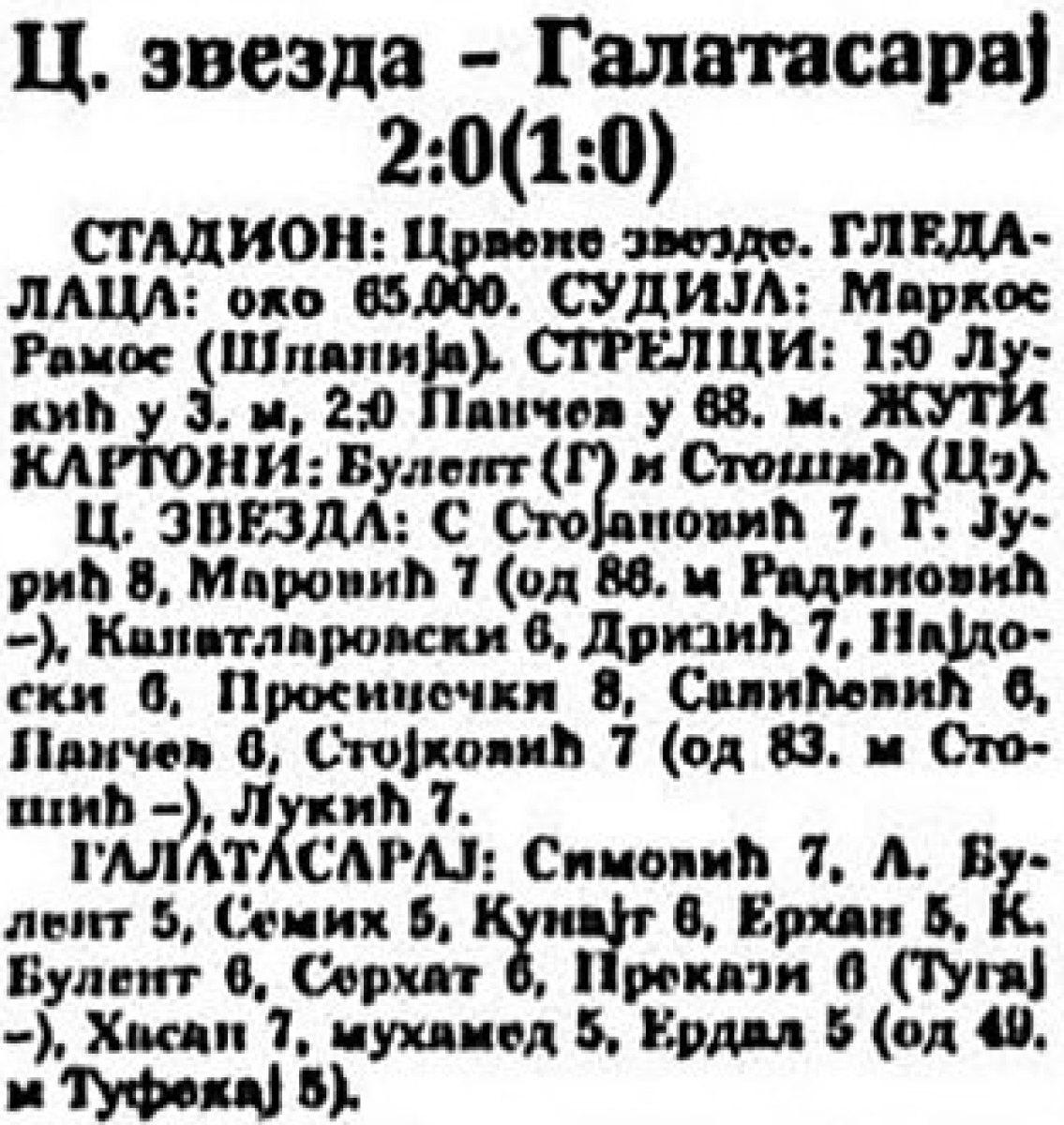 «Црвена Звезда» Белград - «Галатасарай» Стамбул - 2:0