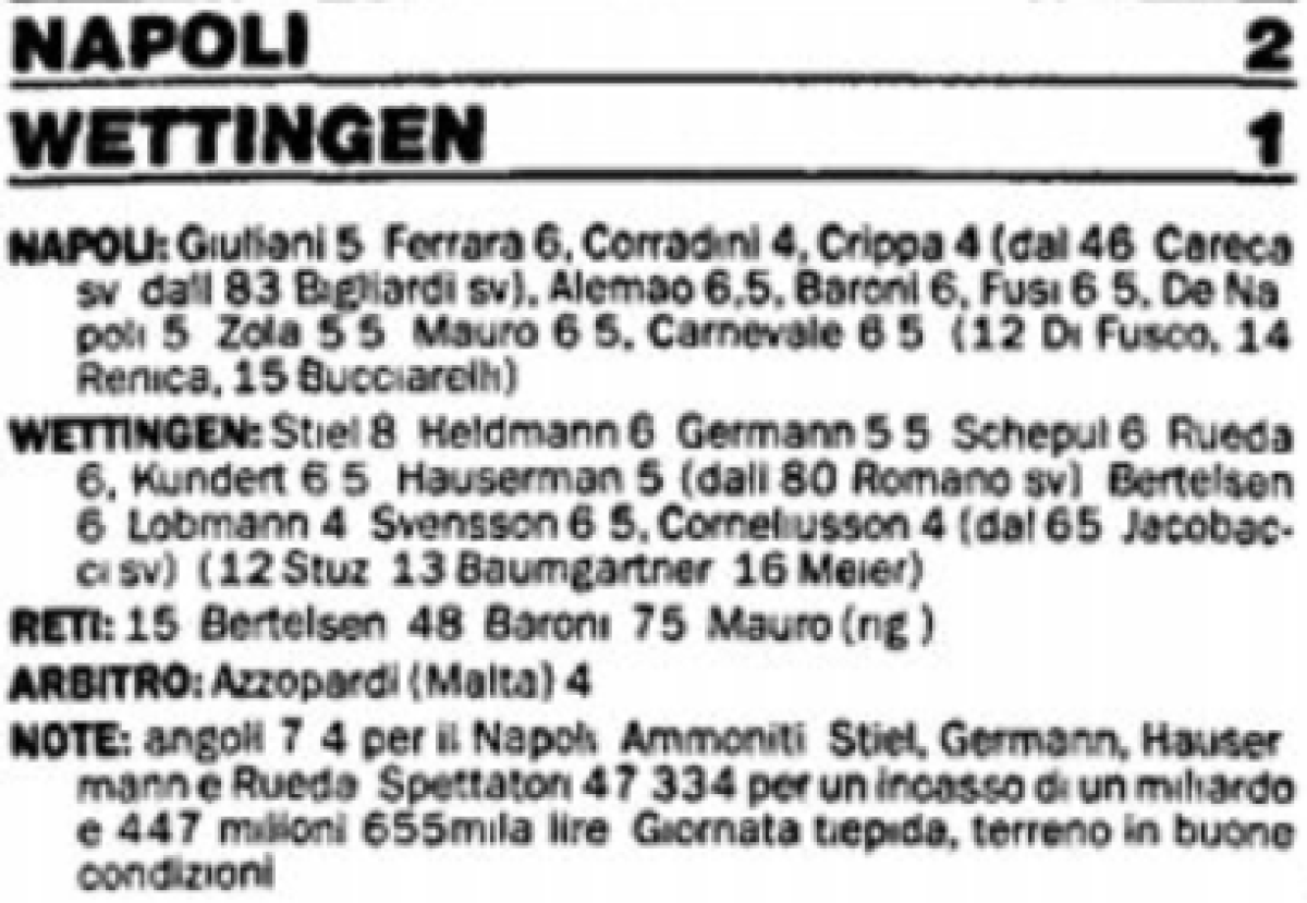 «Наполи» Неаполь - «Веттинген» Веттинген - 2:1