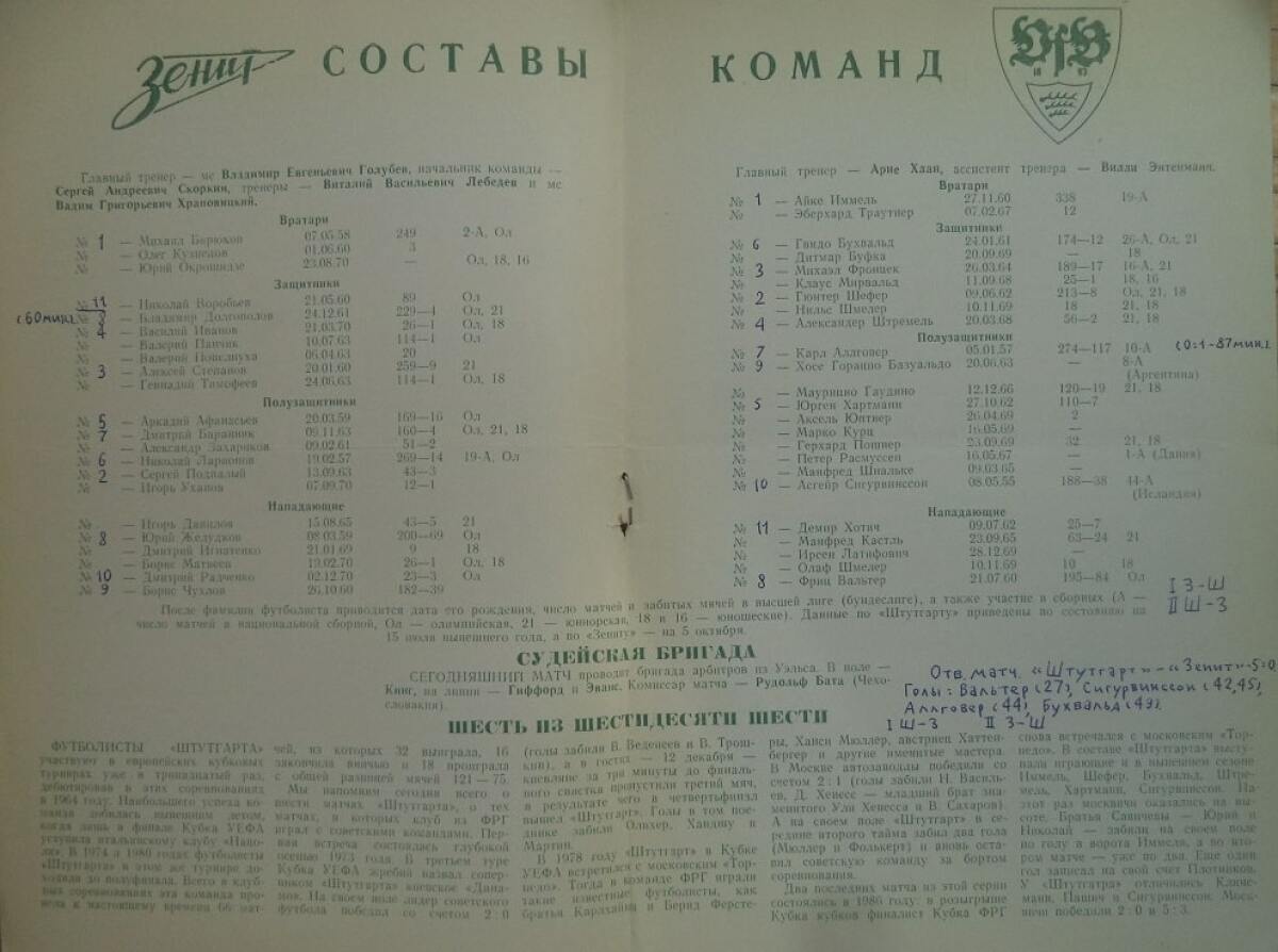 «Зенит» Ленинград - «Штутгарт-1893» Штутгарт - 0:1