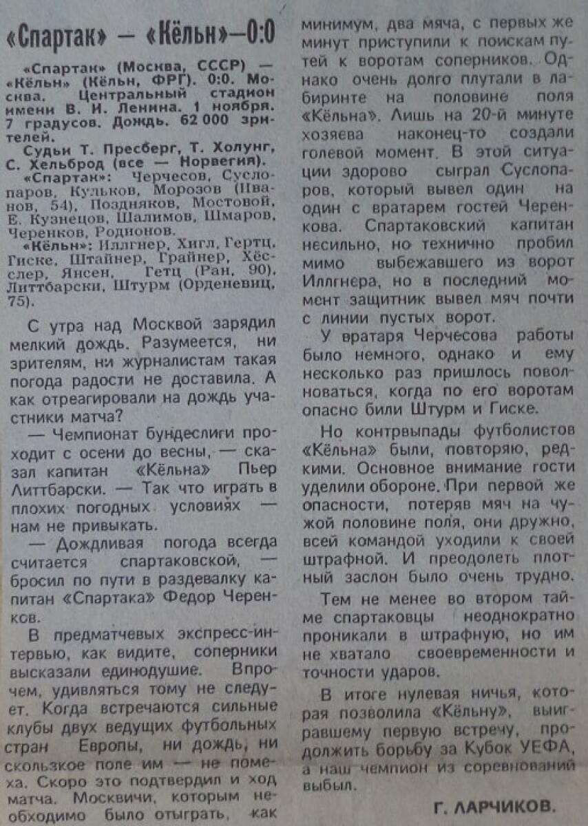 «Спартак» Москва - «1. ФК Кёльн» Кёльн - 0:0