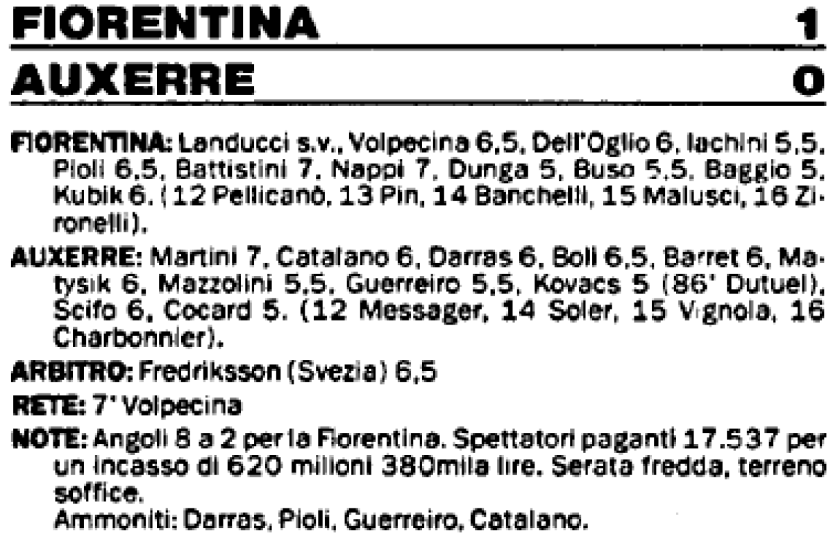 «Фиорентина» Флоренция - «Осер» Осер - 1:0