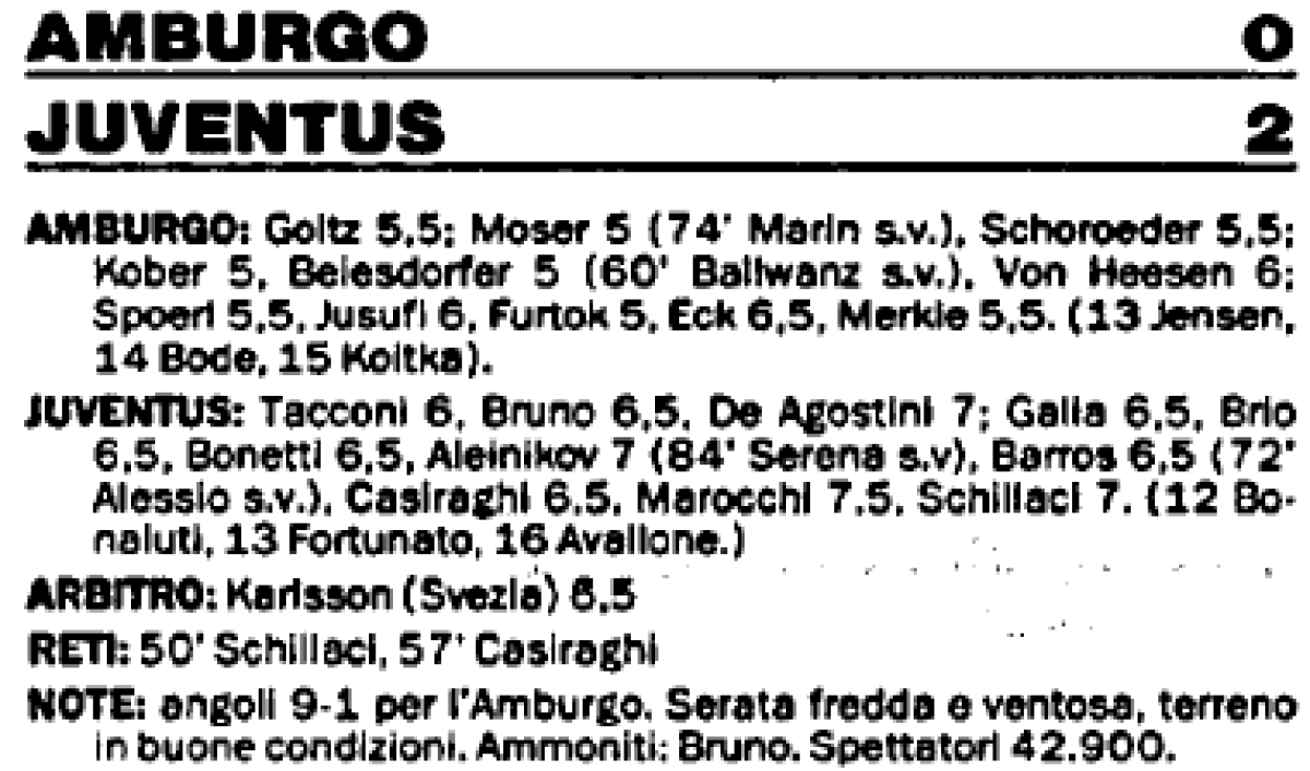«Гамбургер» Гамбург - «Ювентус» Турин - 0:2