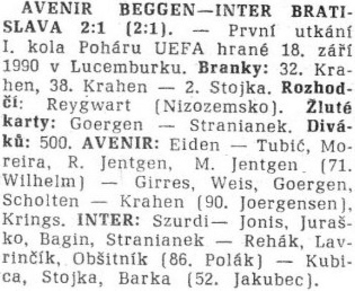 «Авенир» Бегген - «Интер Словнафт» Братислава - 2:1