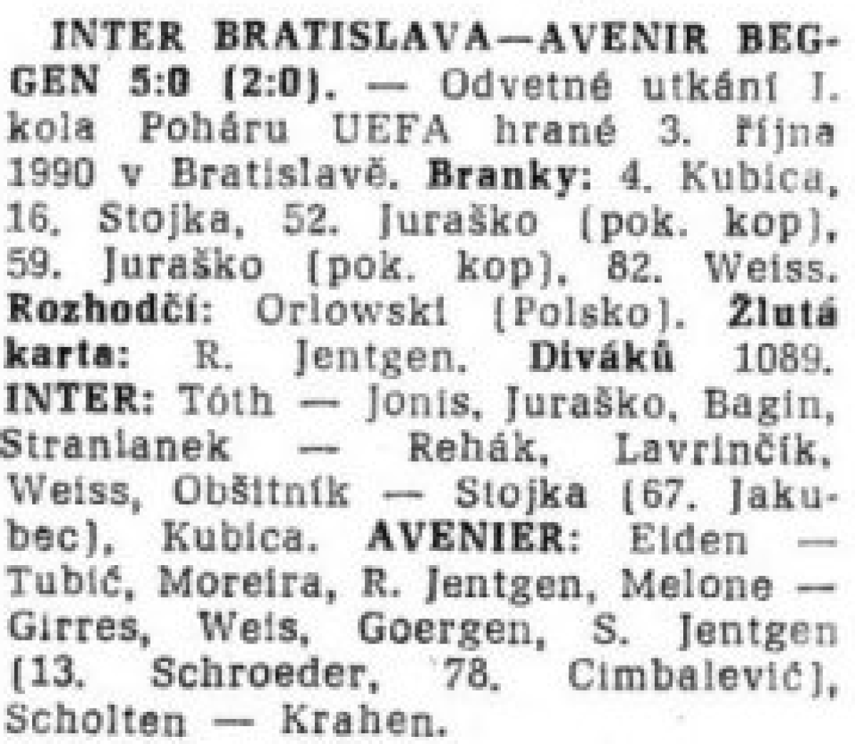 «Интер Словнафт» Братислава - «Авенир» Бегген - 5:0