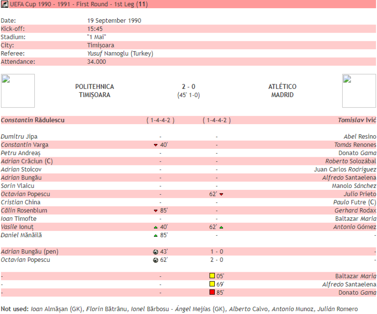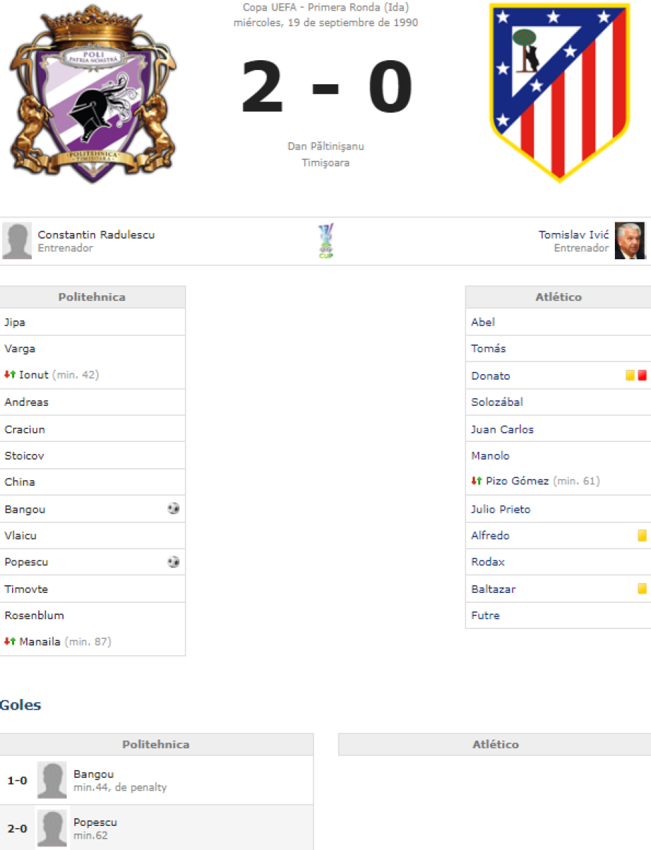 «Политехника» Тимишоара - «Атлетико» Мадрид - 2:0