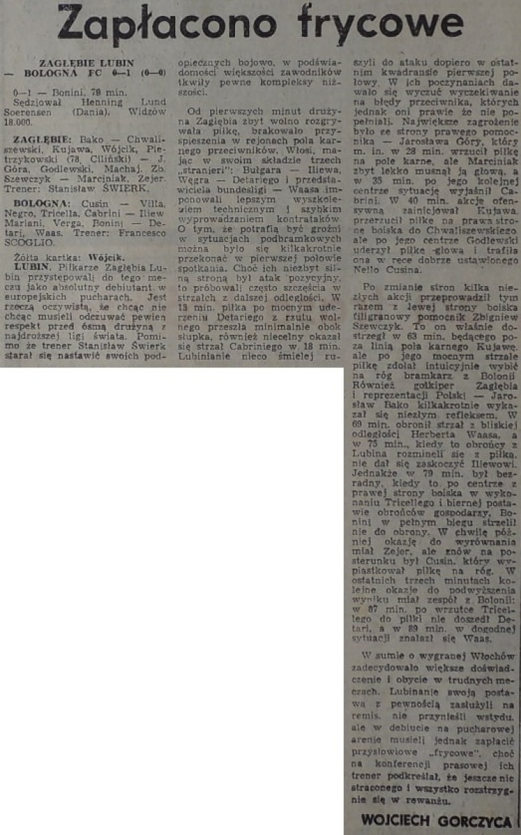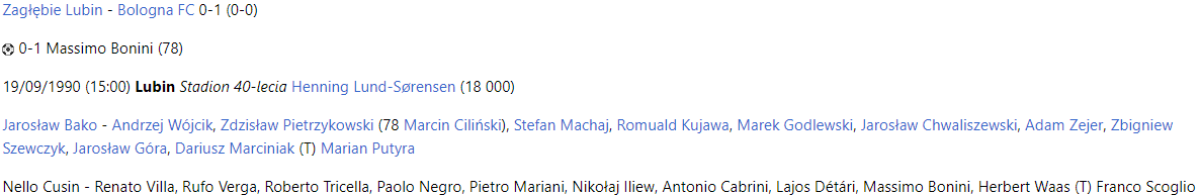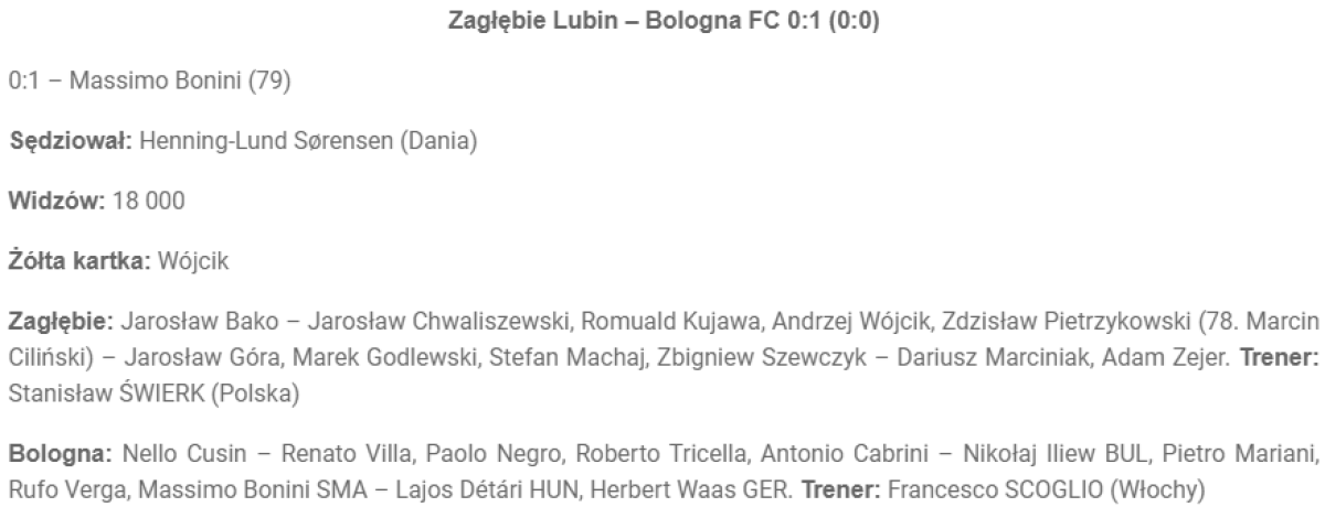 «Заглембе» Любин - «Болонья» Болонья - 0:1