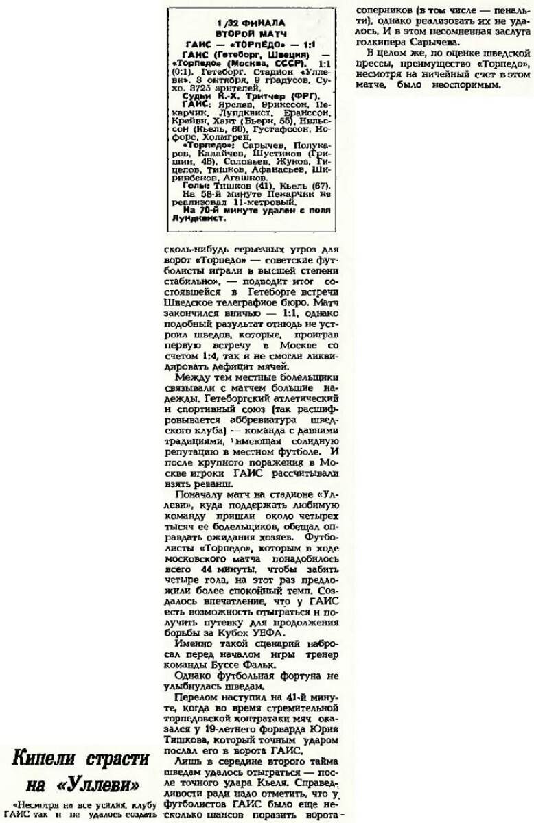 ГАИС Гётеборг - «Торпедо» Москва - 1:1