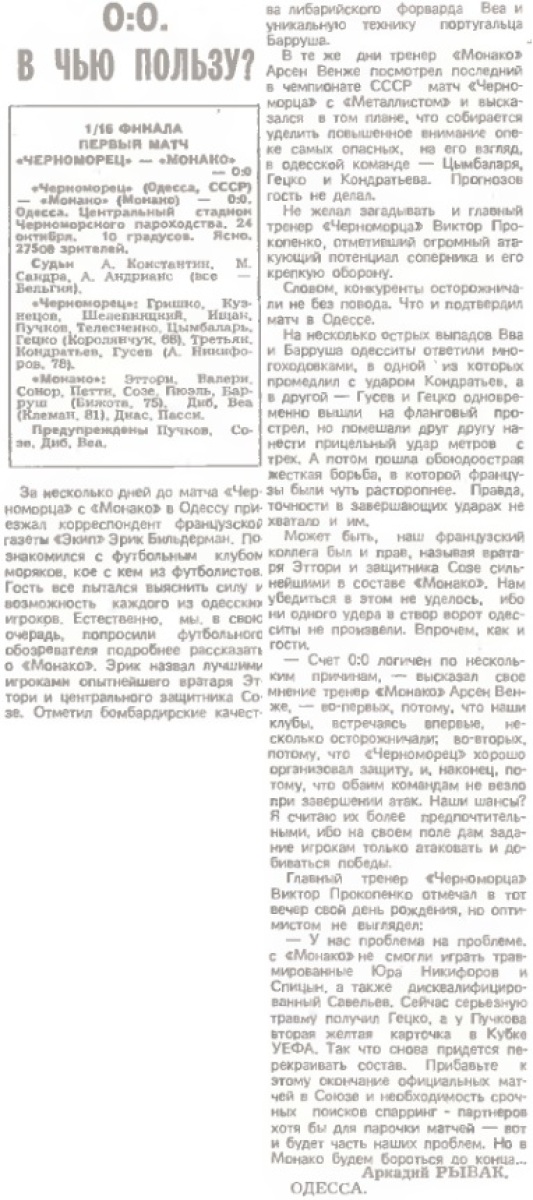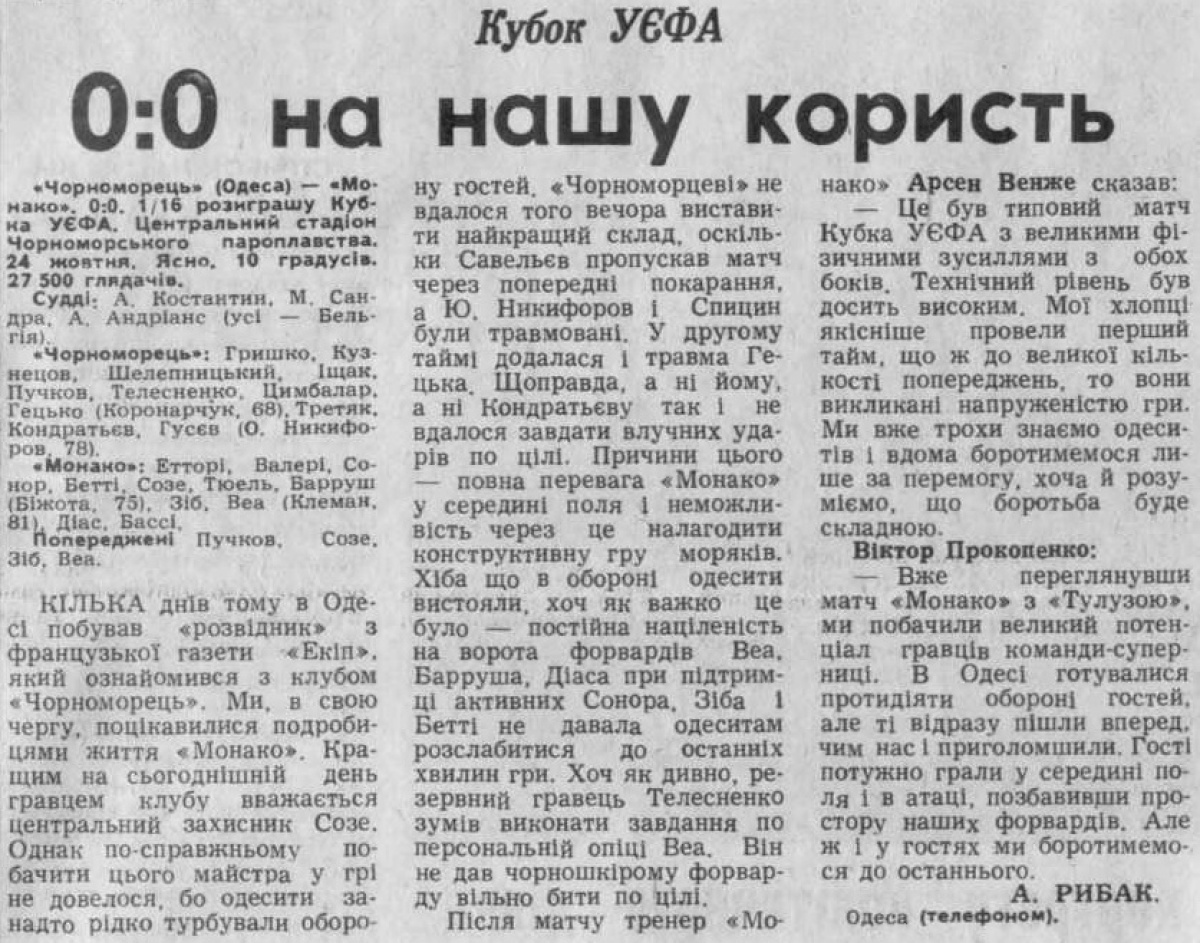 «Черноморец» Одесса - «Монако» Монако - 0:0