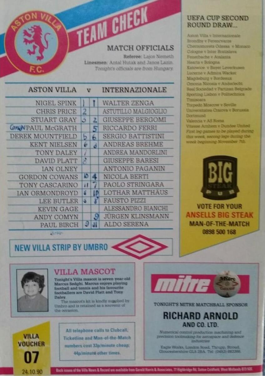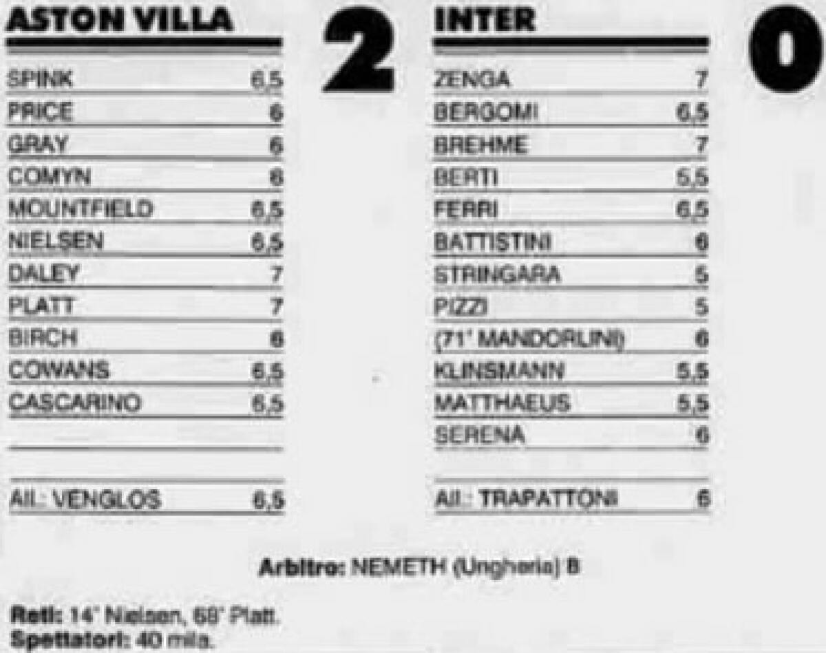 «Астон Вилла» Бирмингем - «Интернационале» Милан - 2:0