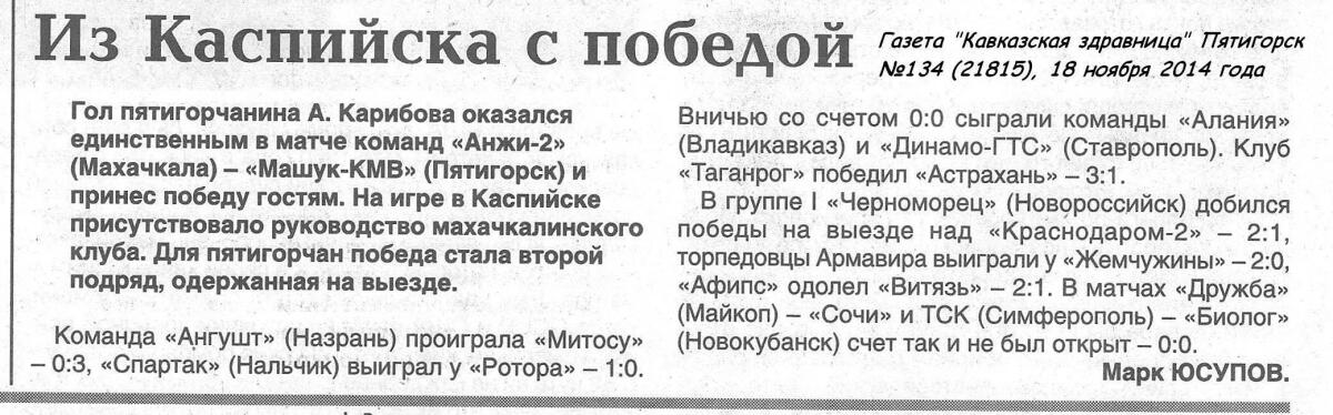 «Анжи-2» Махачкала - «Машук-КМВ» Пятигорск - 0:1