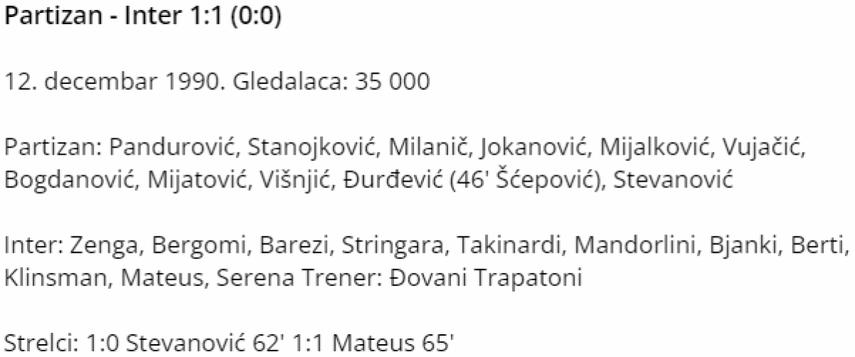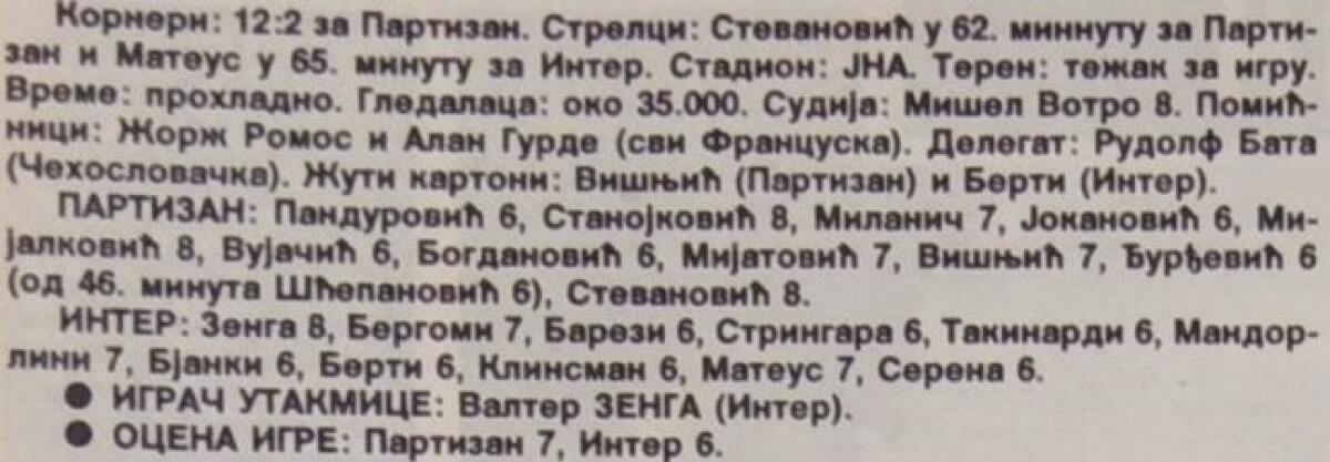 «Партизан» Белград - «Интернационале» Милан - 1:1