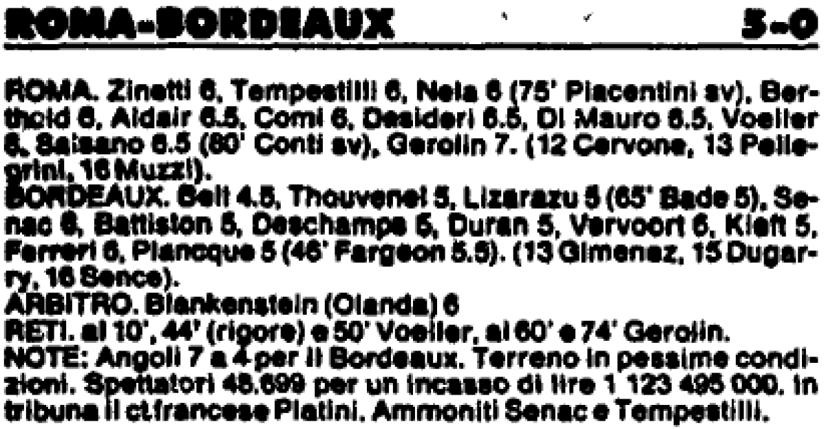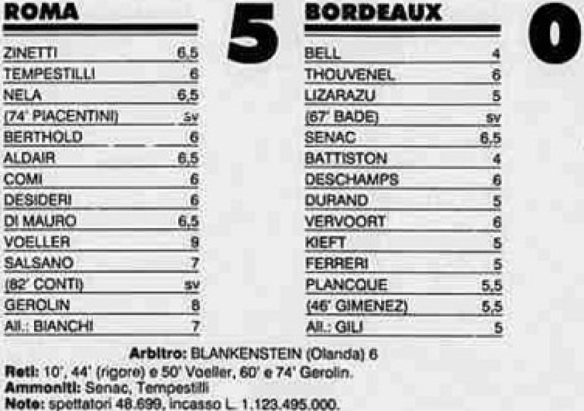 «Рома» Рим - «Жиронден де Бордо» Бордо - 5:0