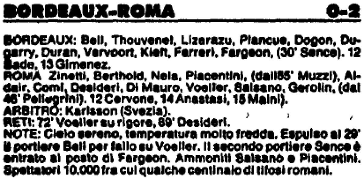 «Жиронден де Бордо» Бордо - «Рома» Рим - 0:2