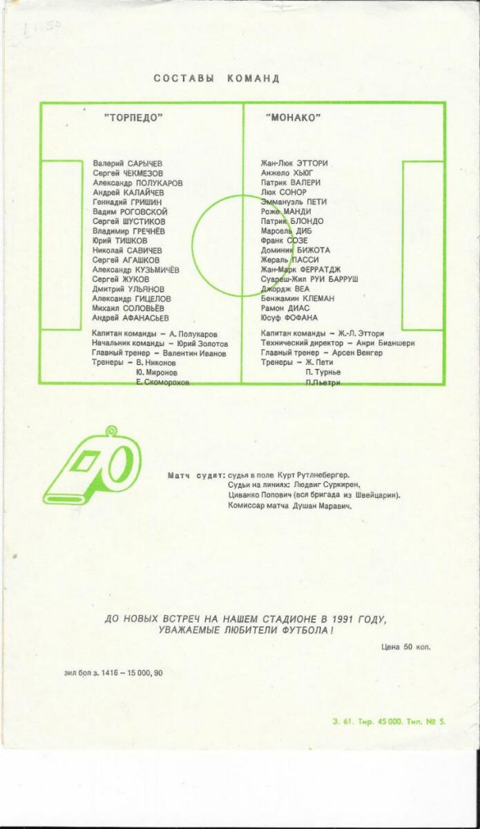 «Торпедо» Москва - «Монако» Монако - 2:1