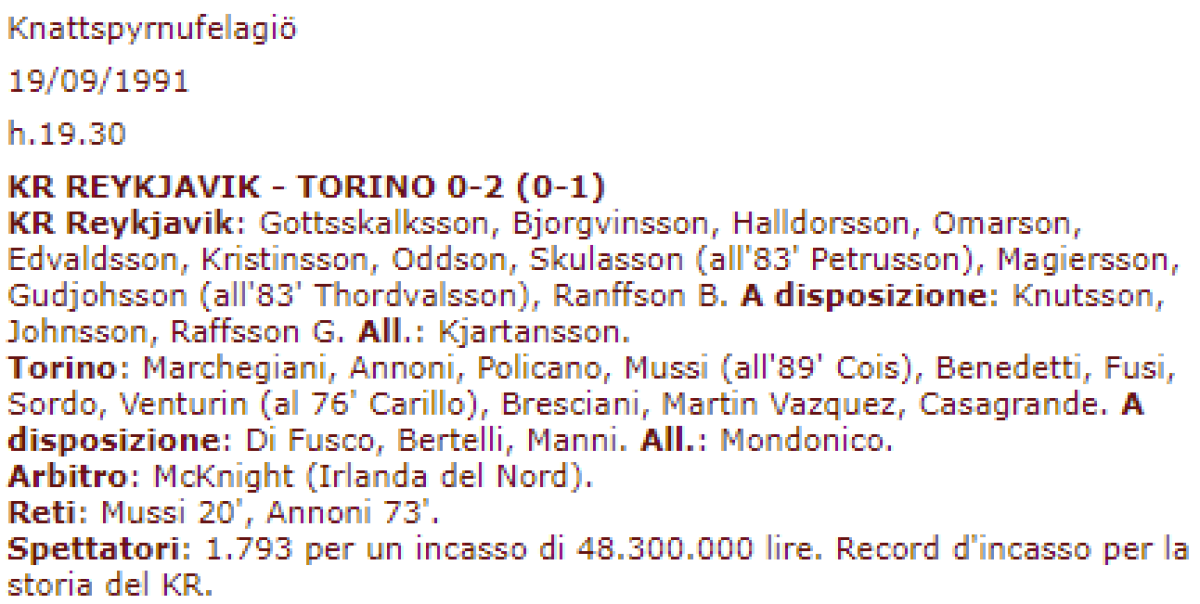 «Рейкьявик» Рейкьявик - «Торино Кальчо» Турин - 0:2