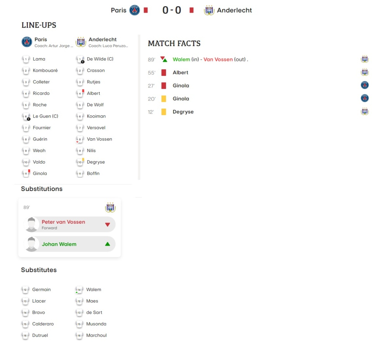 «Пари Сен-Жермен» Париж - «Андерлехт» Андерлехт - 0:0