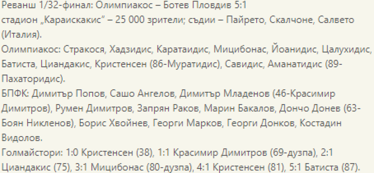 «Олимпиакос» Пирей - «Ботев» Пловдив - 5:1