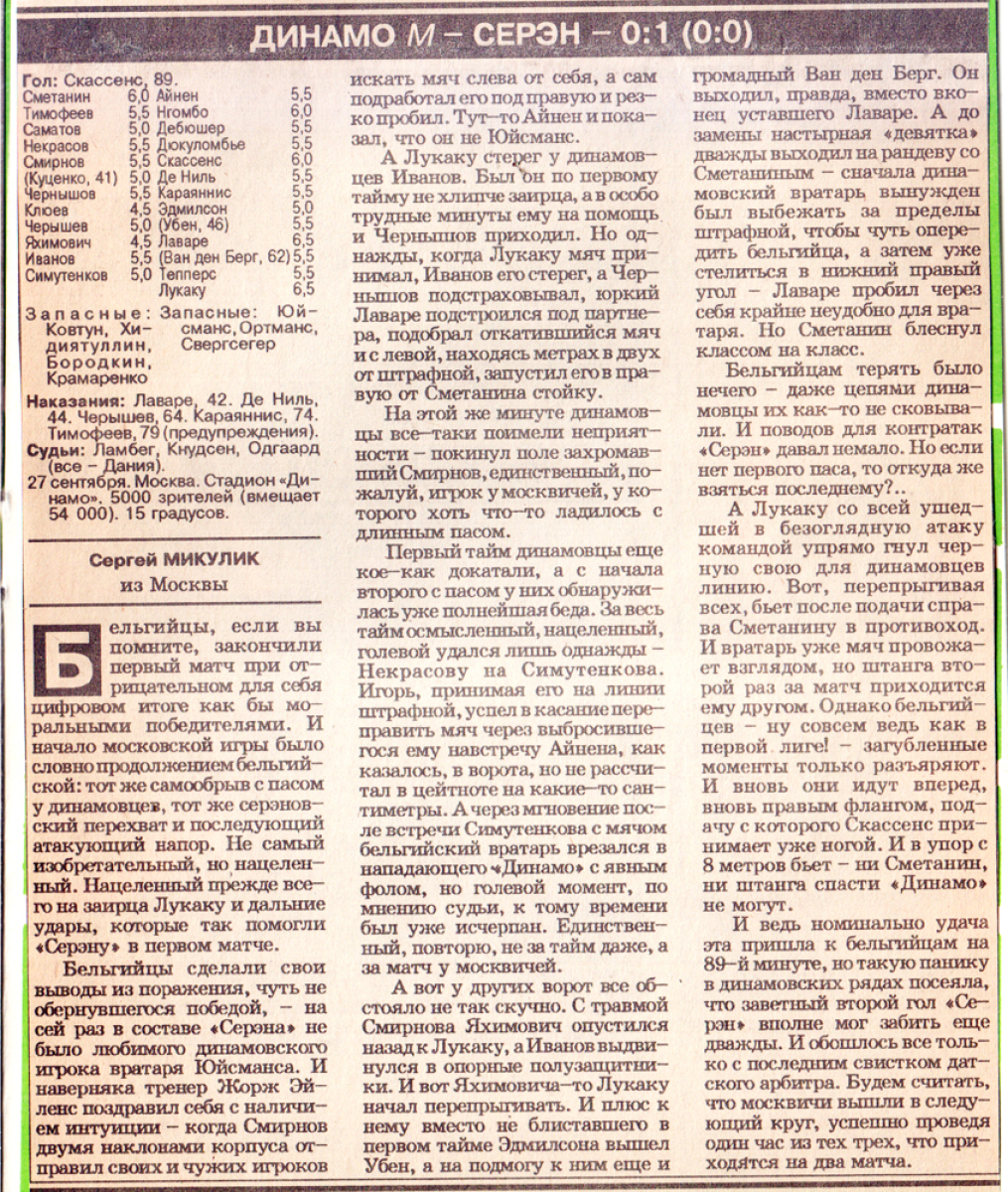 «Динамо» Москва - «Серен» Серен - 0:1