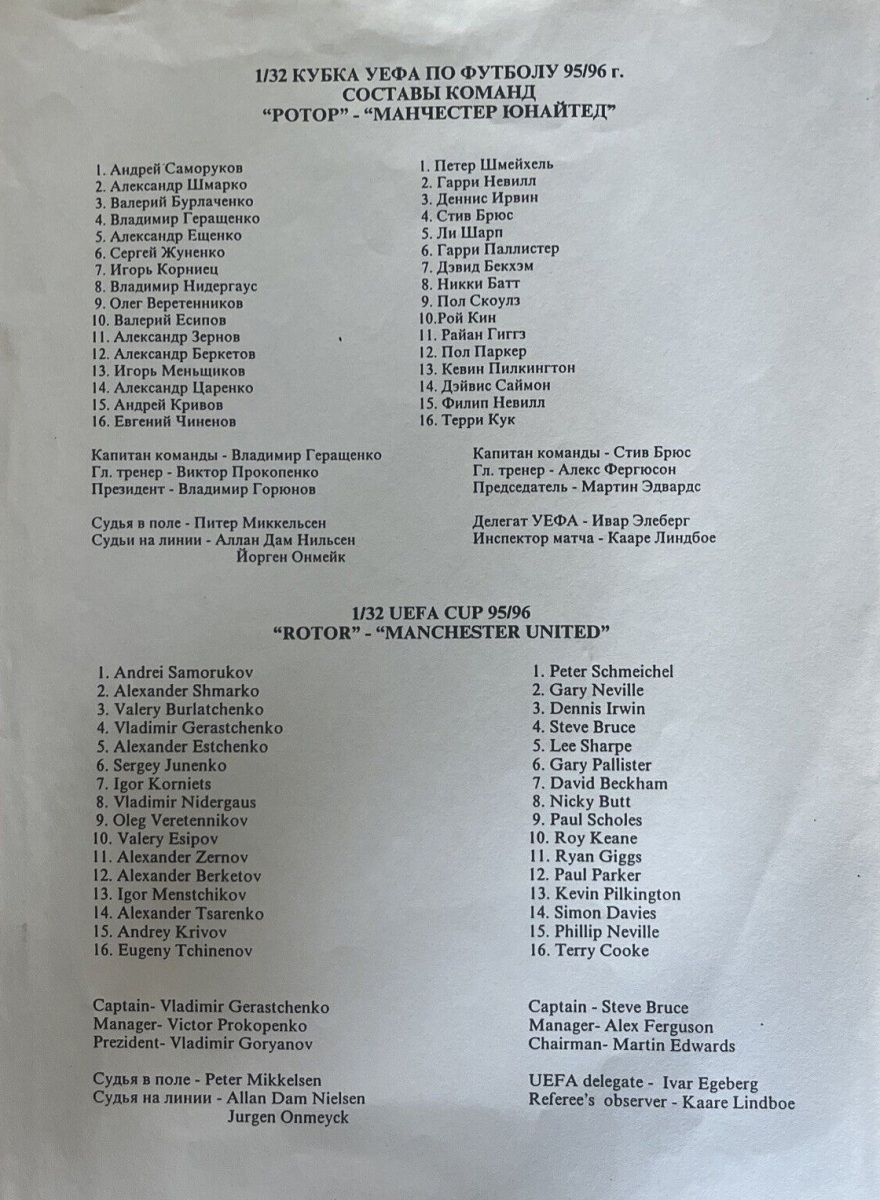 «Ротор» Волгоград - «Манчестер Юнайтед» Манчестер - 0:0