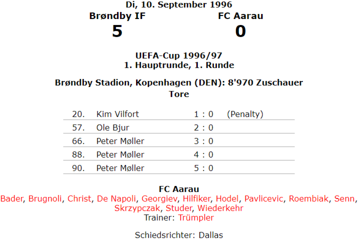 «Брондбю» Брённбювестер - «Арау» Арау - 5:0