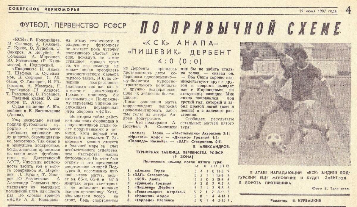 КСК Анапа - «Пищевик» Дербент - 4:0