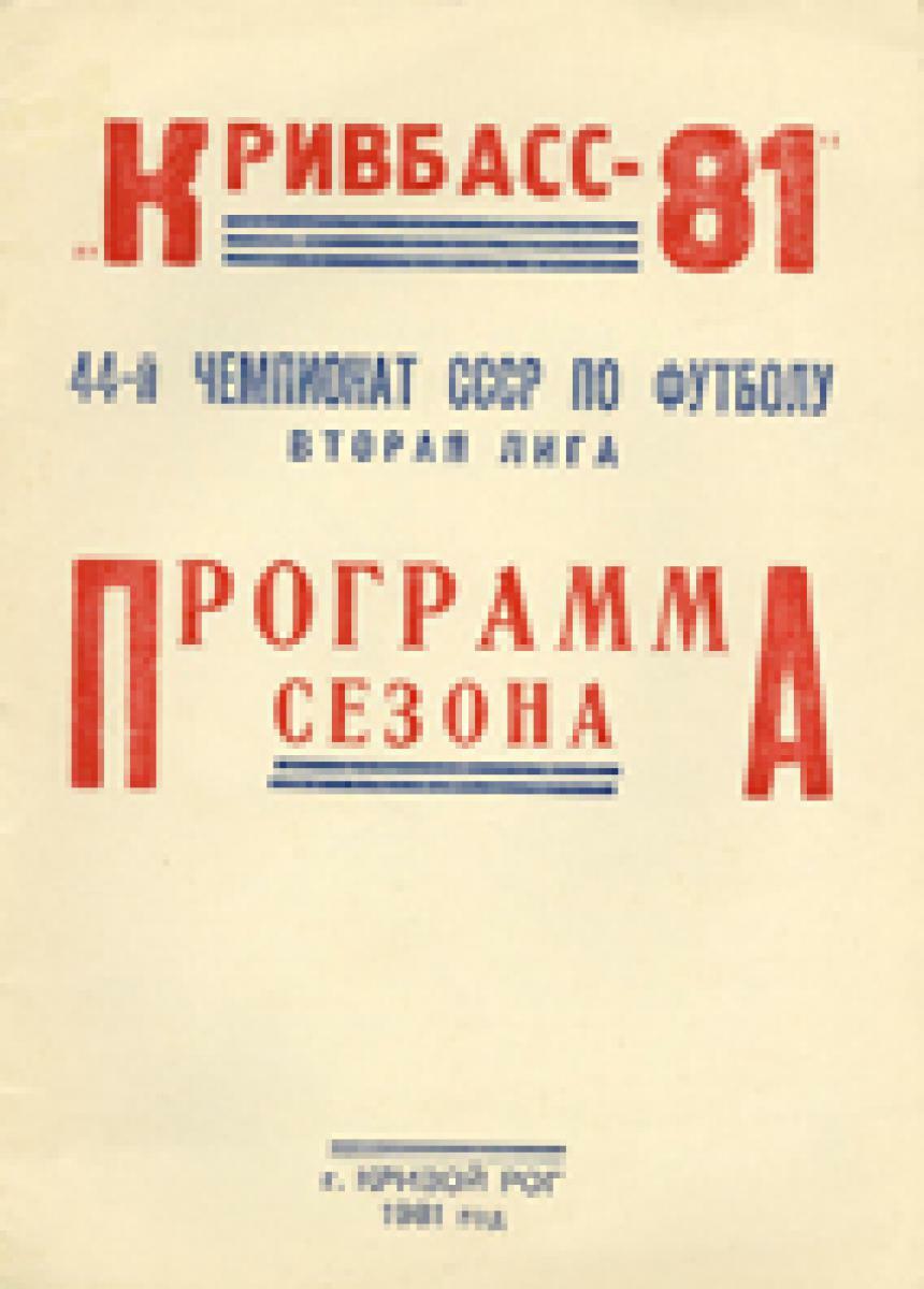«Кривбасс-81». 44-й чемпионат СССР по футболу. Вторая лига. Программа сезона»