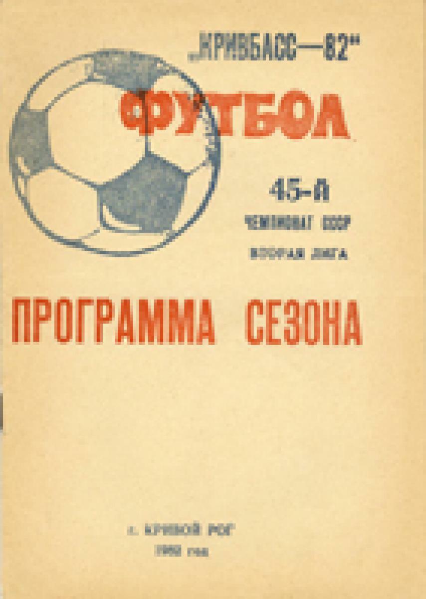 «Кривбасс-82». Футбол. 45-й чемпионат СССР. Вторая лига. Программа сезона»