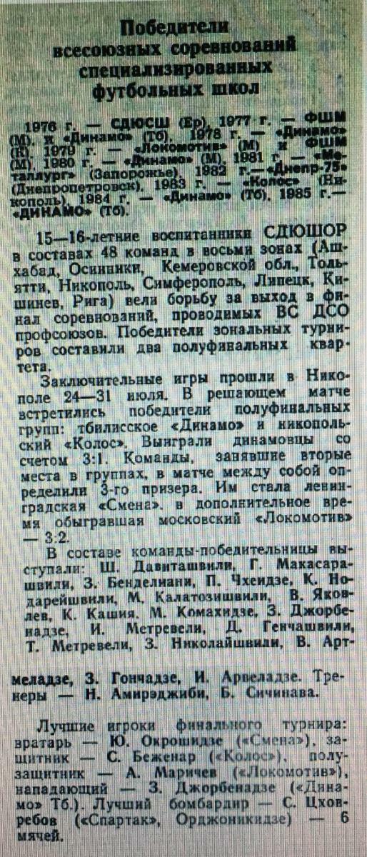 | СДЮШОР «Динамо» Тбилиси СССР |