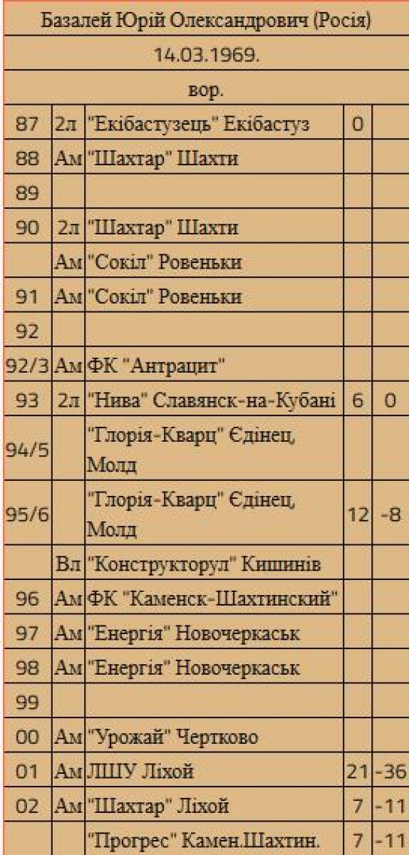| 1992/93 | «Антрацит» Антрацит Украина |