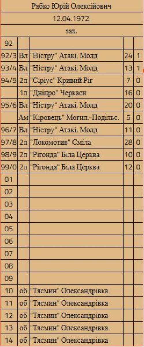 | 1994/95 | «Сириус» Жёлтые Воды Украина |
