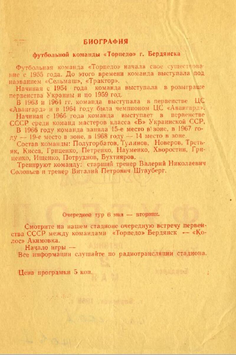 | 1968 | «Торпедо» Бердянск СССР |