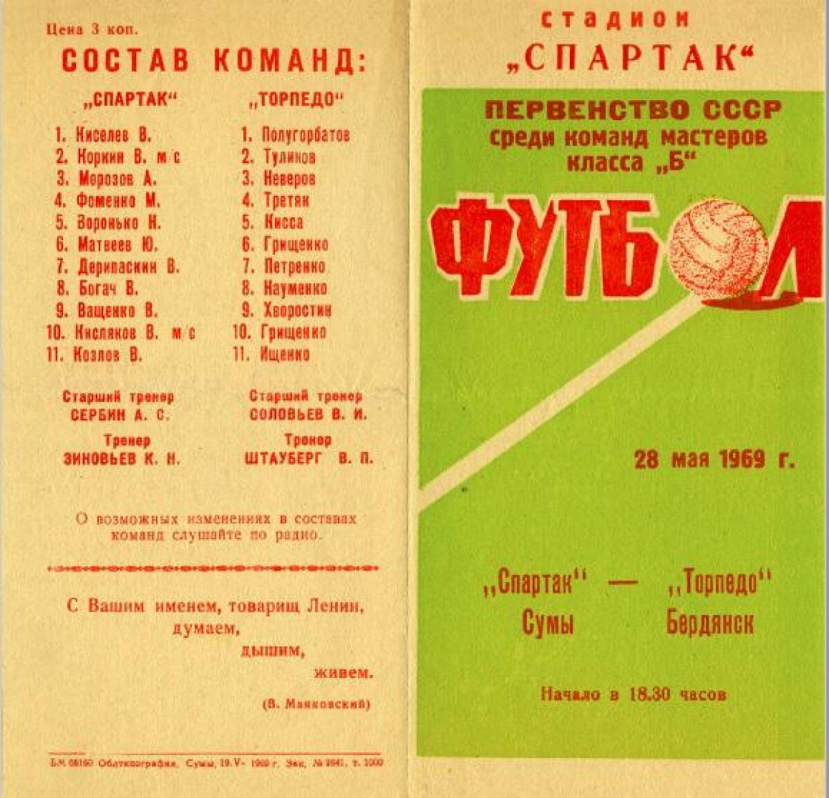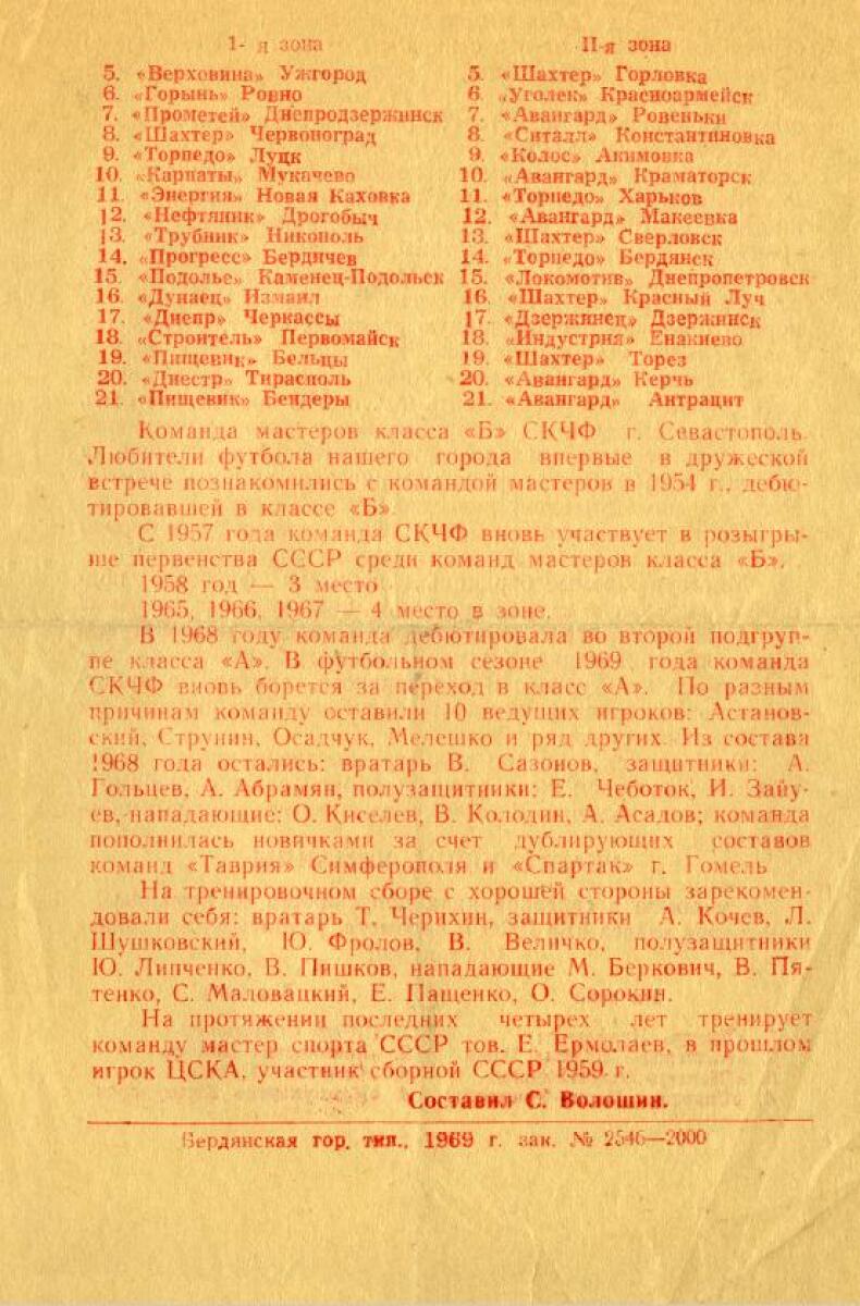 | 1969 | «Торпедо» Бердянск СССР |