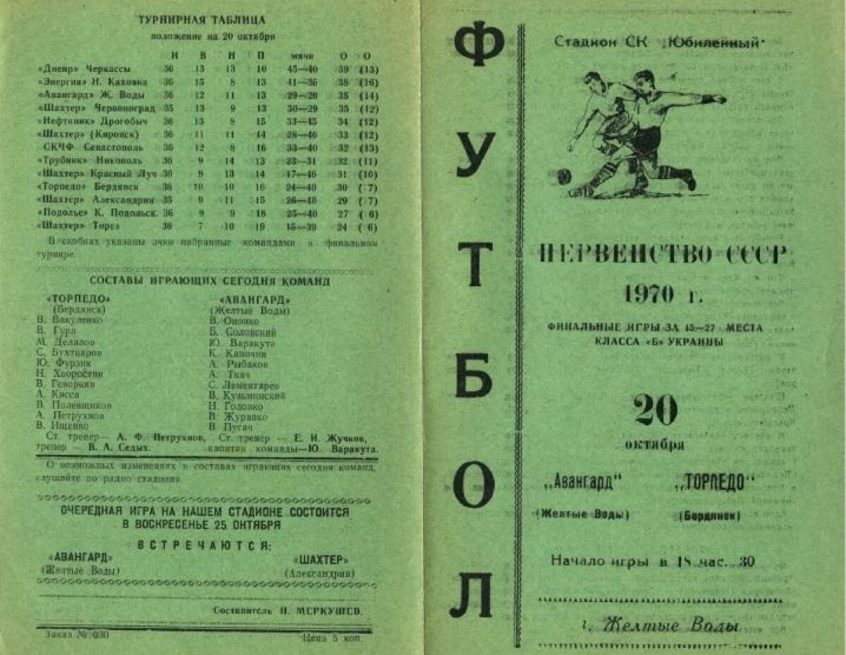 | 1970 | «Торпедо» Бердянск СССР |