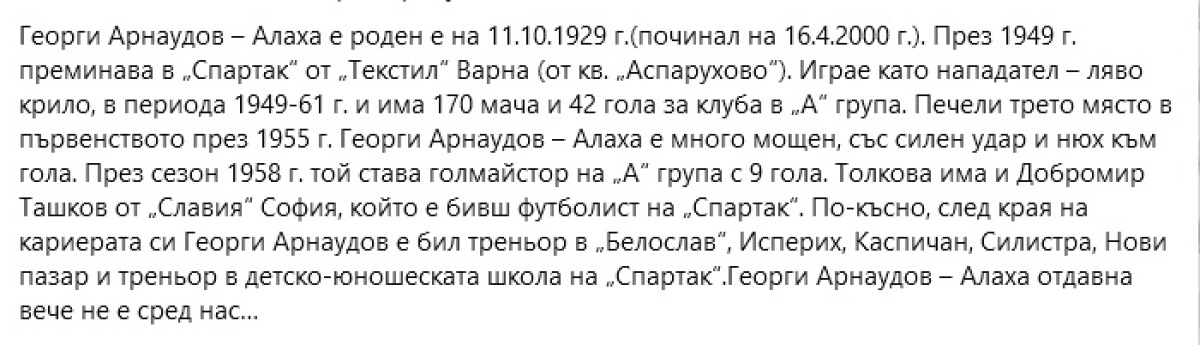 | 1952 | «Спартак» Сталин Болгария |
