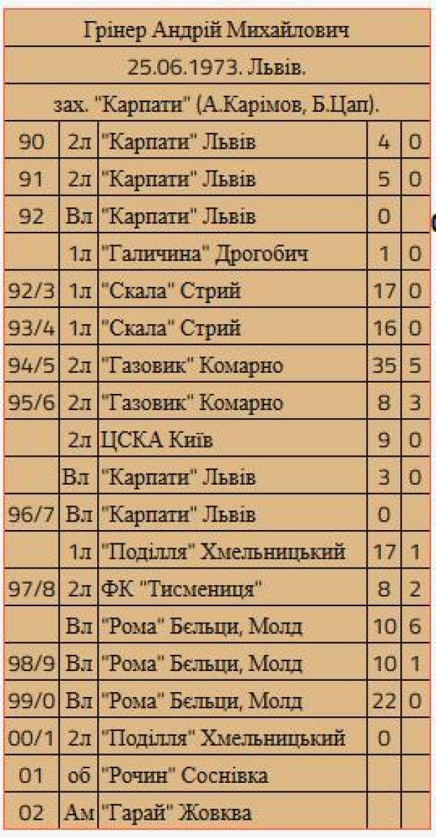 | 1994/95 | «Газовик» Комарно Украина |