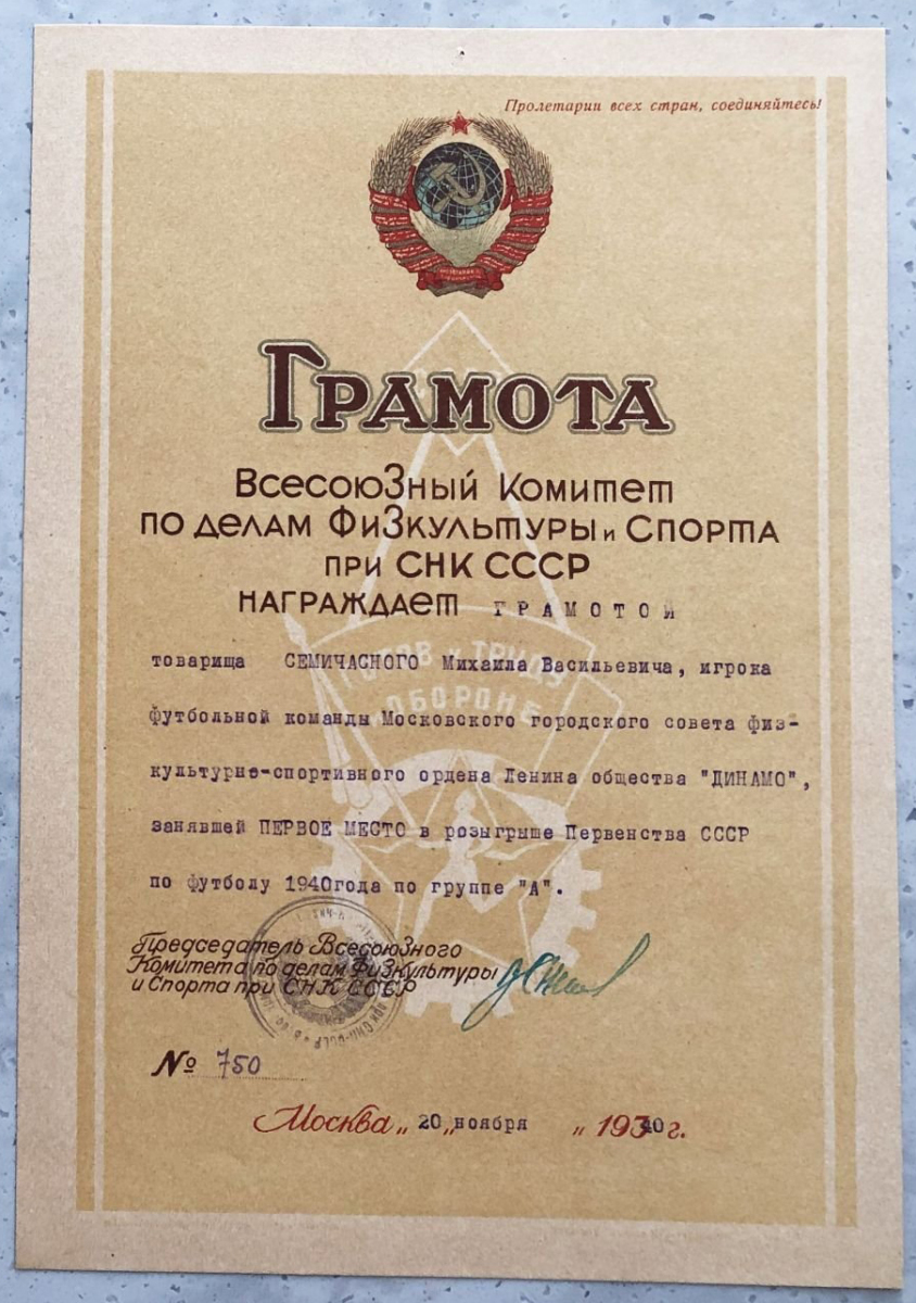 | 1940 | «Динамо» Москва СССР |