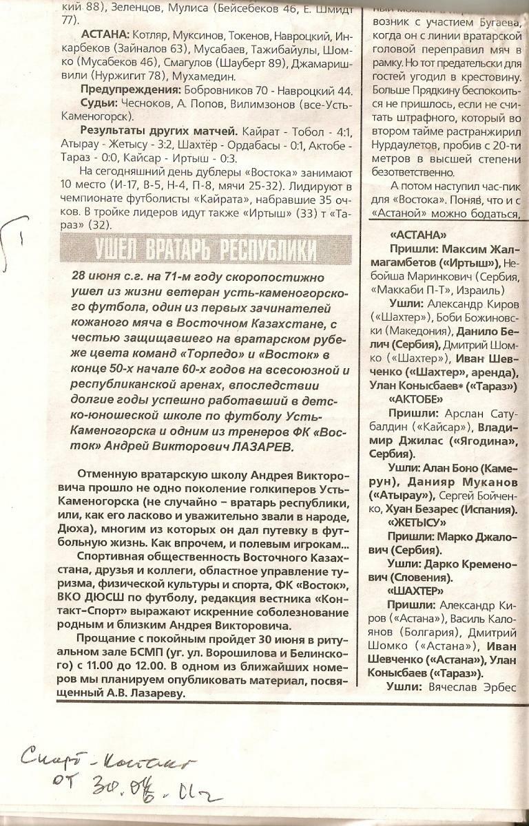 | 1960 | «Торпедо» Усть-Каменогорск СССР |