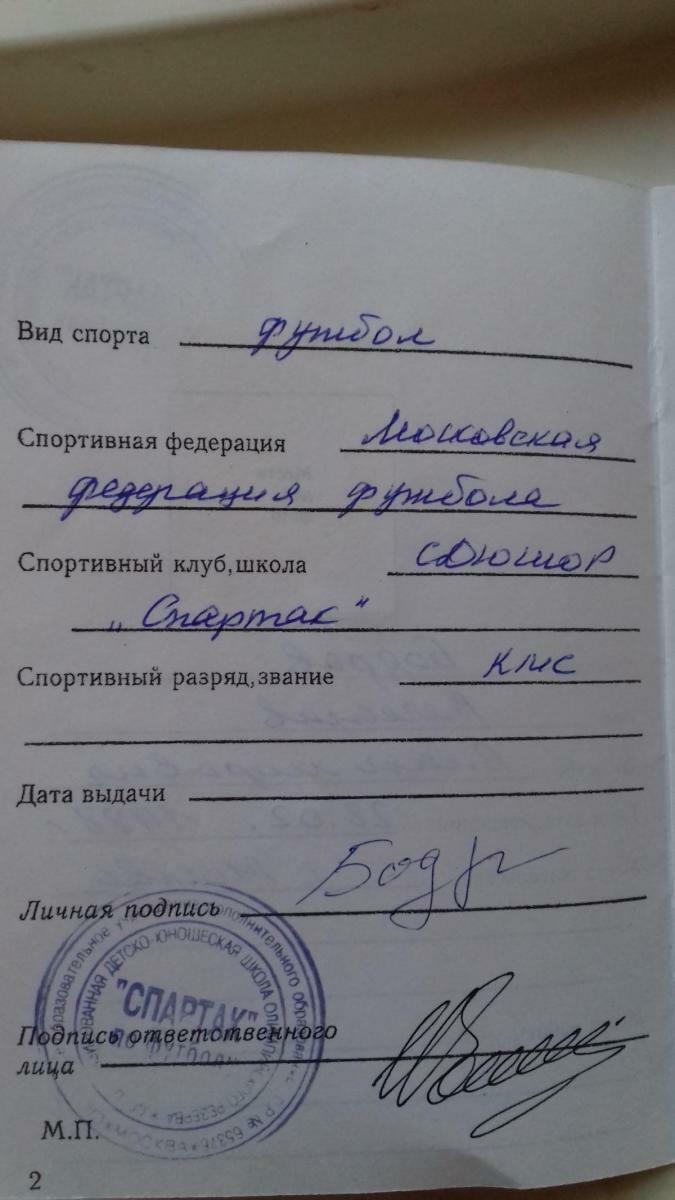 | СДЮШОР «Спартак» Москва Россия |