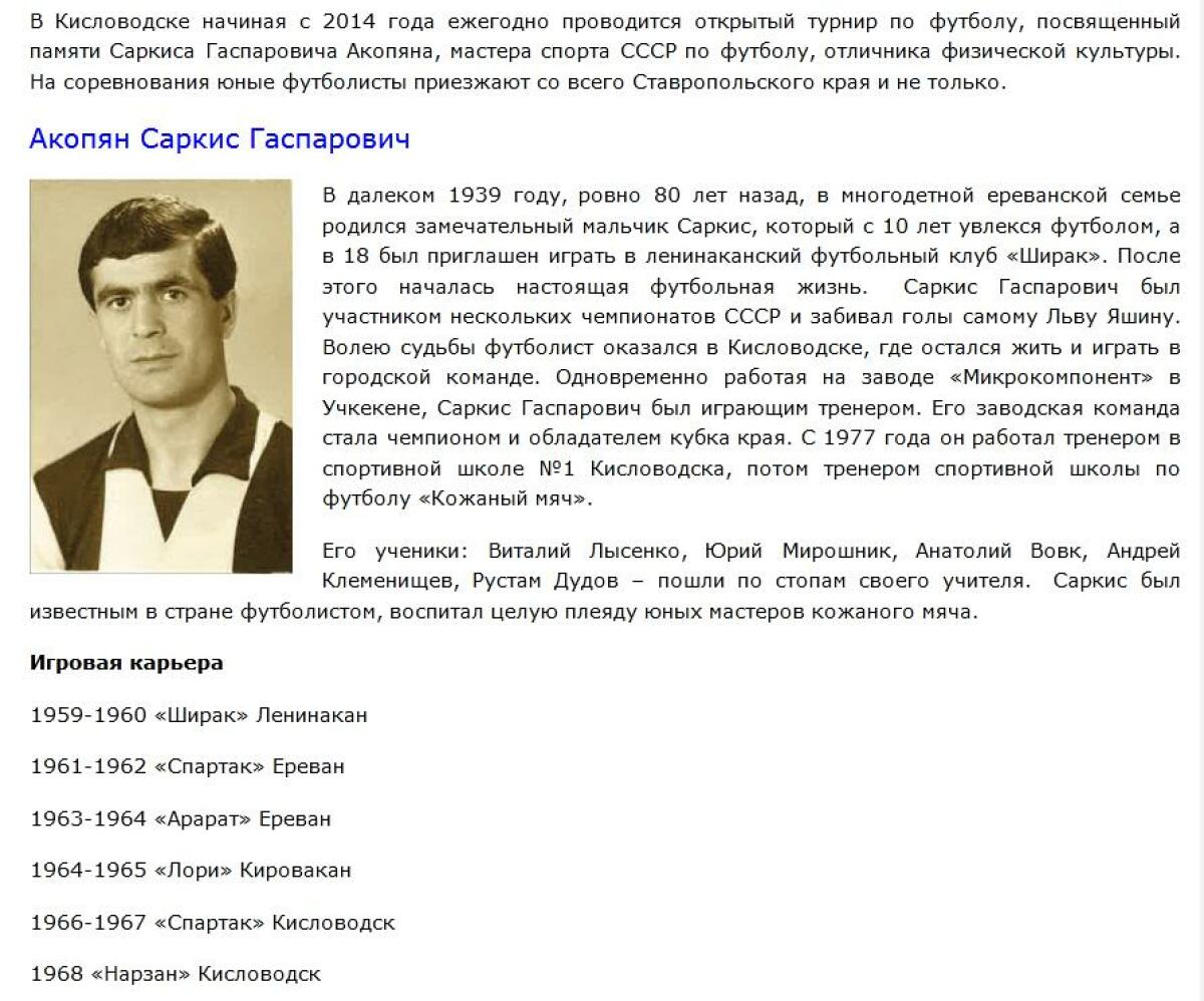 | 1960 | «Ширак» Ленинакан СССР |