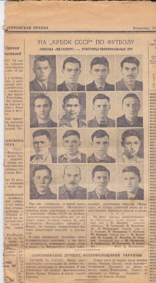 | 1951 | «Металлург» Днепродзержинск СССР |