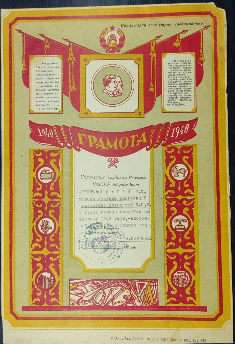| 1948 | «Трудовые резервы» Алма-Ата СССР |
