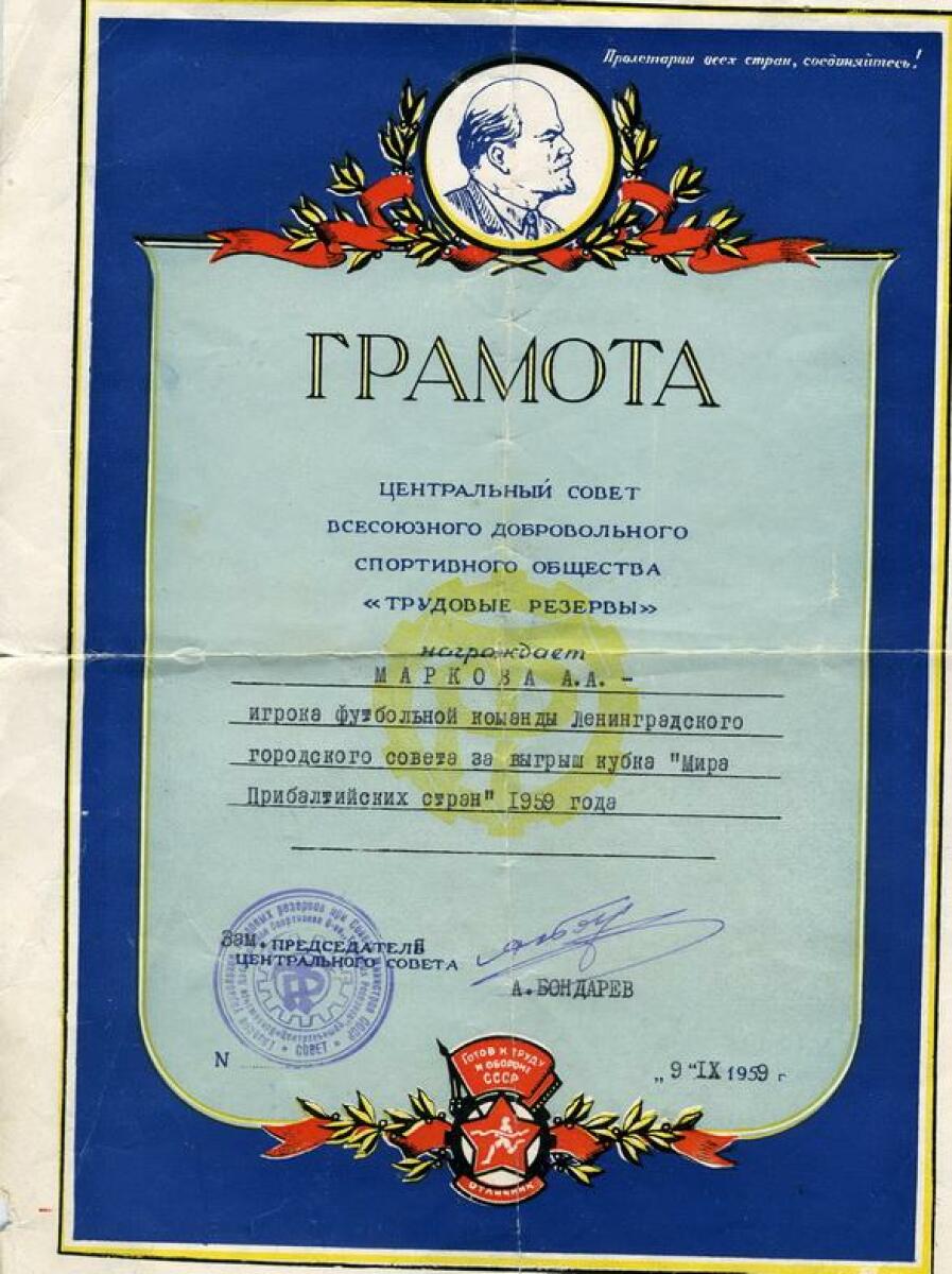 | 1959 | «Трудовые резервы» Ленинград СССР |