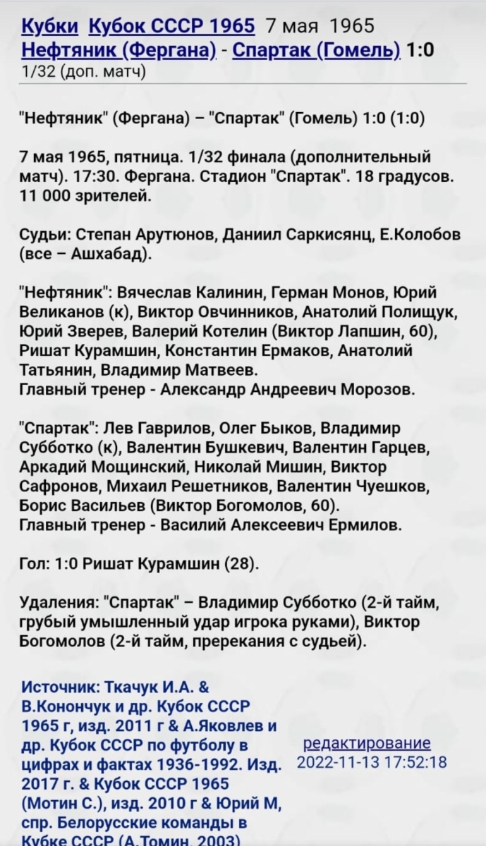 | 1966 | «Пахта-Арал» Ильич СССР |