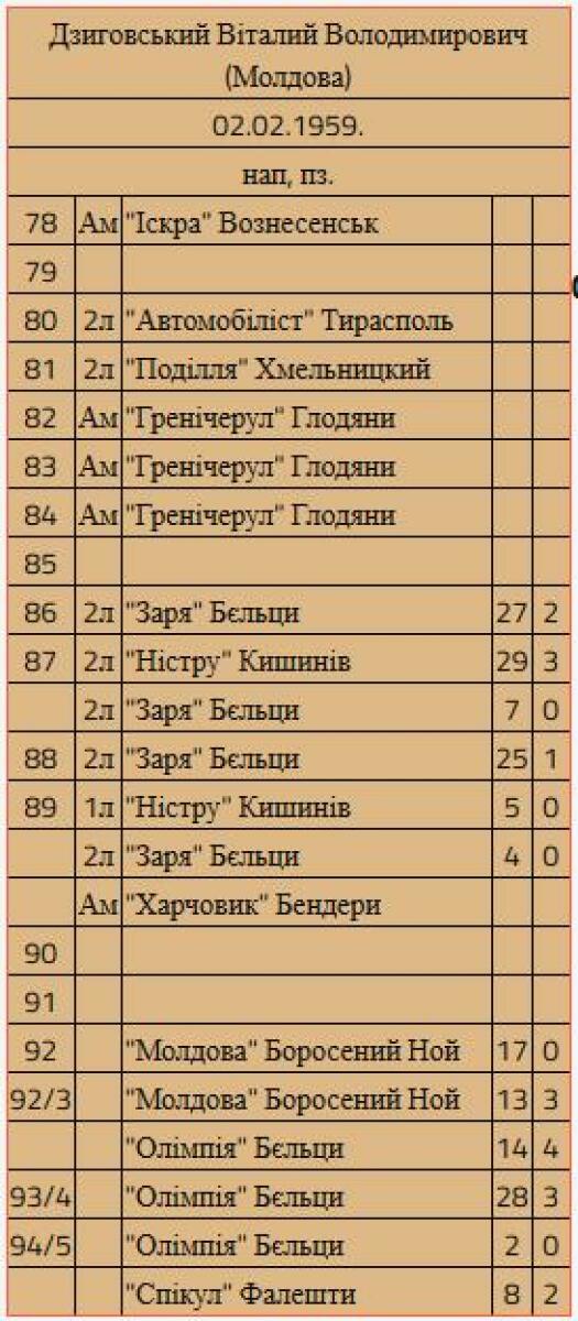 | 1992/93 | «Олимпия» Бельцы Молдавия |