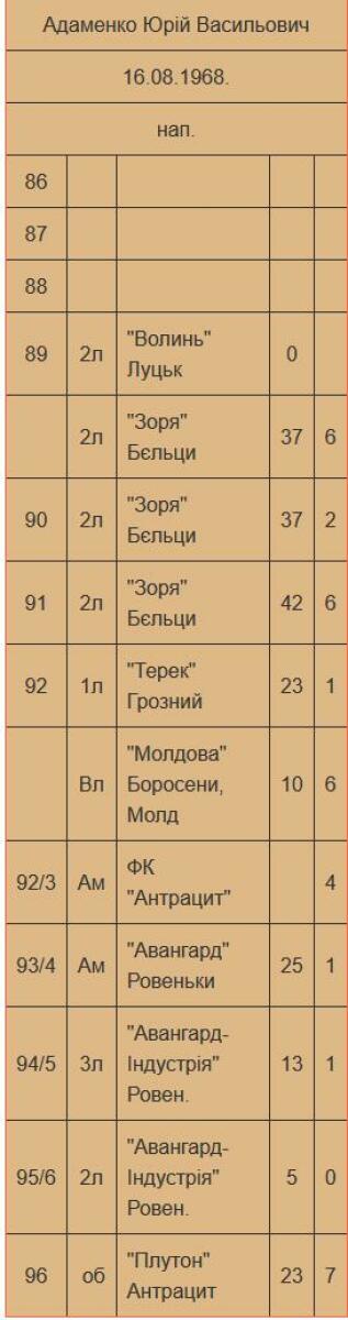 | 1993/94 | «Авангард» Ровеньки Украина |