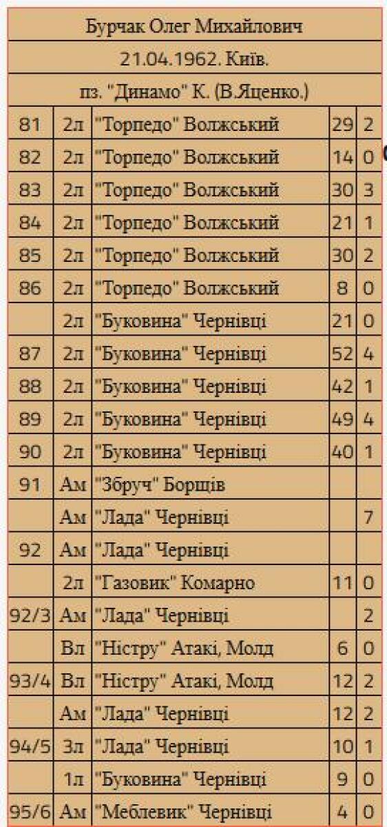| 1995/96 | «Мебельщик» Черновцы Украина |